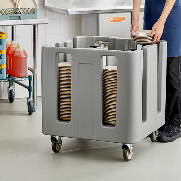 Perfect for large-scale catering events and banquets, this dolly features 6 dividers that easily adjust to accommodate 4 1/2"-13" plates, allowing you to create a variety of dish configurations to suit your specific needs.