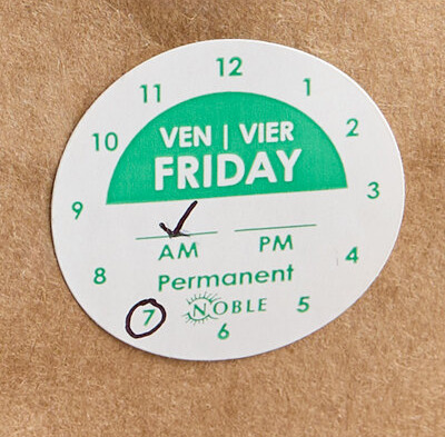 Maintain health code standards and proper food rotation practices with the help of this Noble Friday 1" permanent day of the week clock label.