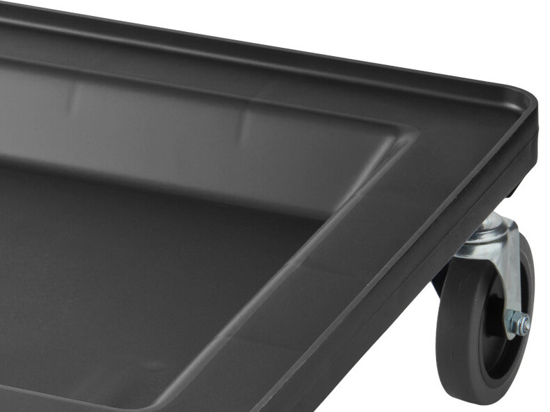 This dolly features a 21" x 21" square design with an indented surface to securely hold standard size glass racks from all the most popular brands, including Noble, Cambro, Carlisle, and many others.