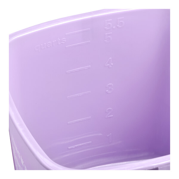 The pail offers embossed text on the rim that states its purpose, which is sure to remain should the white text wash away after repeated use. The pail's interior also features graduations for quart and liter measurements, which assist your staff in creating accurate liquid to solution ratios.