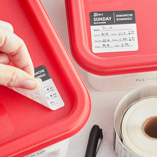 Each label features blanks for Item, Date, Use By, Date, Time, Employee, and Manager to ensure that every food item in your kitchen is efficiently labeled. Plus, this label's trilingual design accommodates a variety of staff members, with the name of each day of the week written in English, Spanish, and French.
