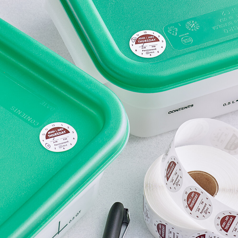 This label's durable, permanent adhesive sticks securely to most surfaces and allows for long-term use with back-of-house storage containers. The preprinted design saves your business time by eliminating the need to create a custom label from scratch every time. This label makes it easy to maintain proper food rotation practices and conform with health codes at a variety of establishments, including independent restaurants, grocery stores, bakeries, delis, coffee shops, buffets, and food trucks.