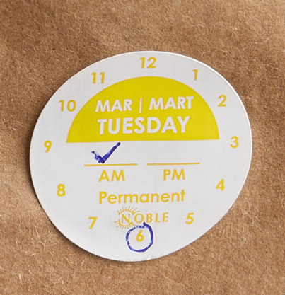 Maintain health code standards and proper food rotation practices with the help of this Noble Tuesday 1" permanent day of the week clock label.