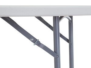 Since its legs bend at multiple joints, this plastic table is easily folded up and laid flat for safekeeping in a closet or on a table cart. Plus, the clips located on its underside were designed to secure its legs in place, allowing for safer storage and effortless transportation.
