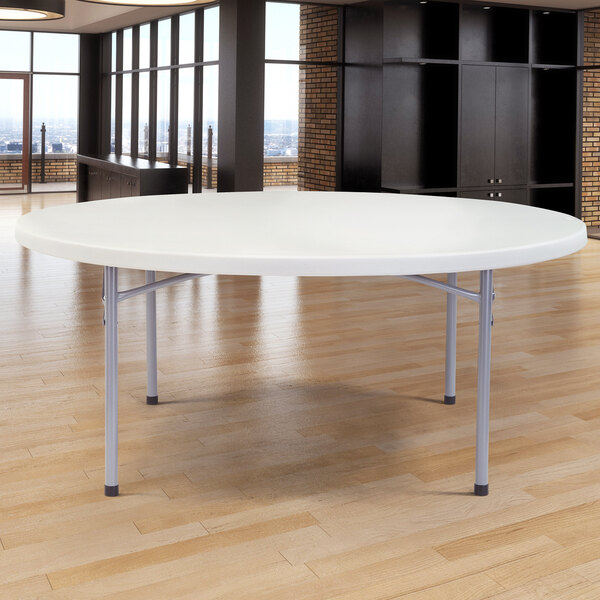 - Item #: 384ycz72rndLancaster Table & Seating 72" Round Heavy-Duty Granite White Plastic Folding Table with Sage Gray Legs