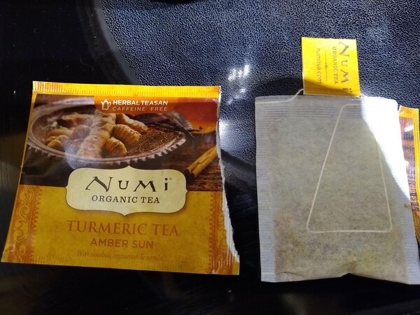 1 Numi organic turmeric tea bag (Amber Sun, Fields of Gold, Three Roots, or Golden Tonic)