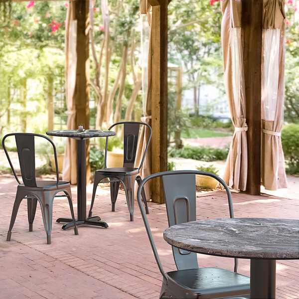 The included cross column table base elevates the table to standard dining height and ensures that the table stays steady and balanced while guests enjoy your signature drinks and dishes. Made of strong stamped steel with a sleek and resilient black e-coating, it's well equipped to weather the elements and resist corrosion. Blending into any environment to enhance your dining space, this table base and column are sure to provide reliable long-lasting use at both indoor and outdoor eateries. Plus, pre-drilled holes allow for the use of floor glides to protect your flooring from scuffs and scratches!