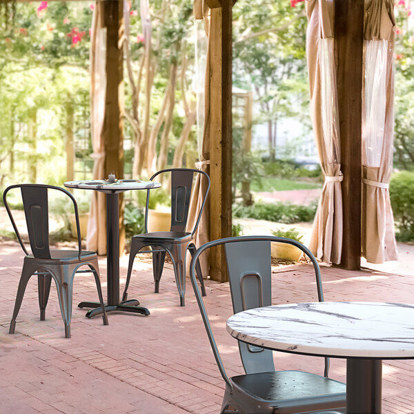 This round table has a smooth versilla finish that offers the classic look of marble at a fraction of the cost. Whether you're looking to revamp your restaurant's front-of-house space or enhance the appearance of your cafe patio or deck, this table top will spotlight the beauty of nature while focusing on an elegant dining experience in order to bring you the best of both worlds! To save you money on shipping costs, the table ships unassembled. All required assembly hardware is included so you can quickly set it up in its proper space and let your guests enjoy!