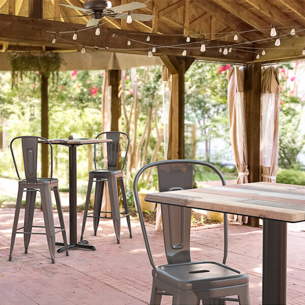 Lancaster Table & Seating Excalibur 24" x 24" Square Bar Height Table with Textured Mixed Plank Finish and Cross Base Plate