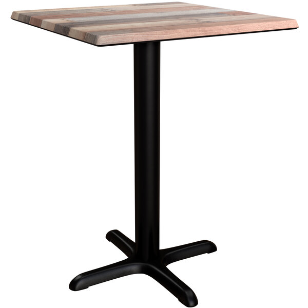 Lancaster Table & Seating Excalibur 24" x 24" Square Standard Height Table with Textured Mixed Plank Finish and Cross Base Plate
