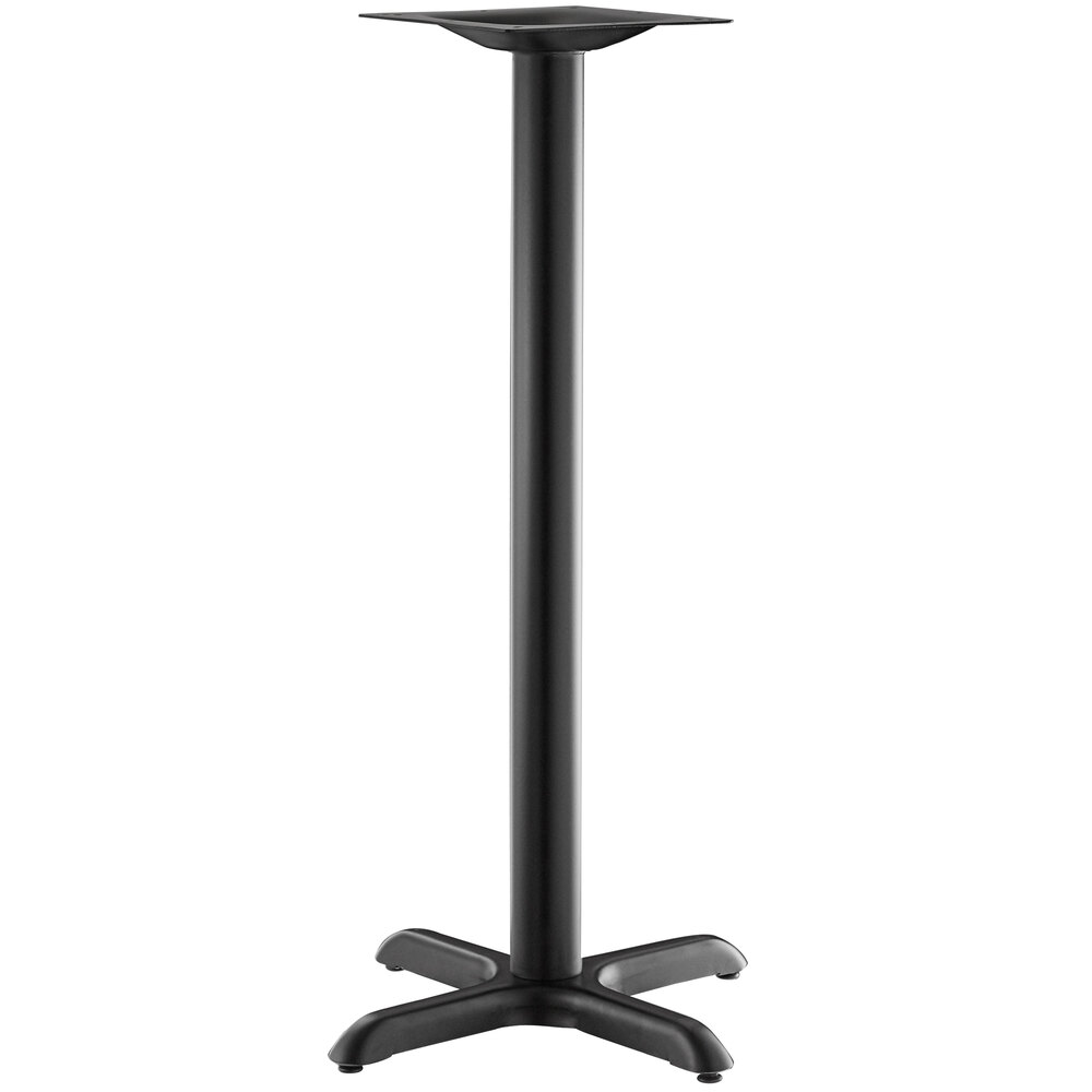 The included cross column table base elevates the table to bar height and ensures that the table stays steady and balanced while guests enjoy your signature drinks and dishes. Made of strong stamped steel with a sleek and resilient black e-coating, it's well equipped to weather the elements and resist corrosion. Blending into any environment to enhance your dining space, this table base and column are sure to provide reliable long-lasting use at both indoor and outdoor eateries. Plus, pre-drilled holes allow for the use of floor glides to protect your flooring from scuffs and scratches!