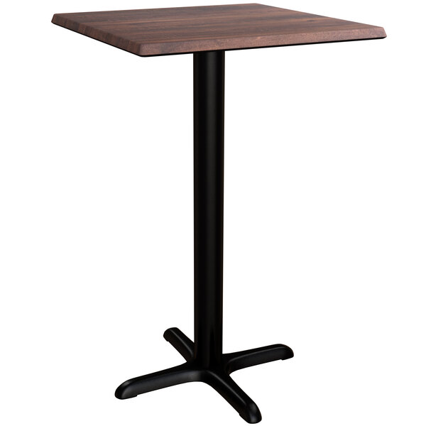 Lancaster Table & Seating Excalibur 24" x 24" Square Counter Height Table with Textured Walnut Finish and Cross Base Plate