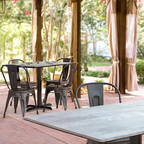 This rectangular table has a textured toscano finish that offers the rustic look of stone with a subtle, intriguing texture. Whether you're looking to revamp your restaurant's front-of-house space or enhance the appearance of your cafe patio or deck, this table top will spotlight the beauty of nature while focusing on an elegant dining experience in order to bring you the best of both worlds! To save you money on shipping costs, the table ships unassembled. All required assembly hardware is included so you can quickly set it up in its proper space and let your guests enjoy!