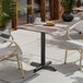 The included cross column table base elevates the table to standard dining height and ensures that the table stays steady and balanced while guests enjoy your signature drinks and dishes. Made of strong stamped steel with a sleek and resilient black e-coating, it's well equipped to weather the elements and resist corrosion. Blending into any environment to enhance your dining space, this table base and column are sure to provide reliable long-lasting use at both indoor and outdoor eateries. Plus, pre-drilled holes allow for the use of floor glides to protect your flooring from scuffs and scratches!