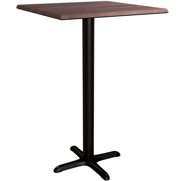 Lancaster Table & Seating Excalibur 28" x 28" Square Bar Height Table with Textured Walnut Finish and Cross Base Plate
