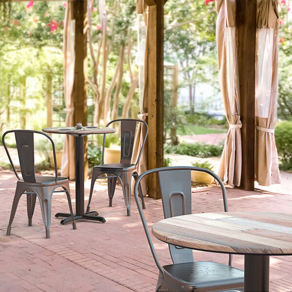 This round table has a textured mixed plank finish that offers the rustic look of solid wood with a subtle, intriguing texture. Whether you're looking to revamp your restaurant's front-of-house space or enhance the appearance of your cafe patio or deck, this table top will spotlight the beauty of nature while focusing on an elegant dining experience in order to bring you the best of both worlds! To save you money on shipping costs, the table ships unassembled. All required assembly hardware is included so you can quickly set it up in its proper space and let your guests enjoy!