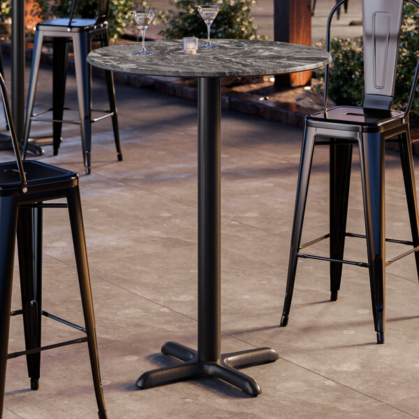 Lancaster Table & Seating Excalibur 32" Round Bar Height Table with Smooth Paladina Finish and Cross Base Plate