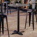 The included cross column table base elevates the table to bar height and ensures that the table stays steady and balanced while guests enjoy your signature drinks and dishes. Made of strong stamped steel with a sleek and resilient black e-coating, it's well equipped to weather the elements and resist corrosion. Blending into any environment to enhance your dining space, this table base and column are sure to provide reliable long-lasting use at both indoor and outdoor eateries. Plus, pre-drilled holes allow for the use of floor glides to protect your flooring from scuffs and scratches!