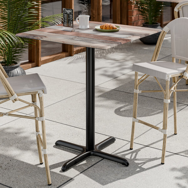 Lancaster Table & Seating Excalibur 36" x 36" Square Bar Height Table with Textured Mixed Plank Finish and Cross Base Plate