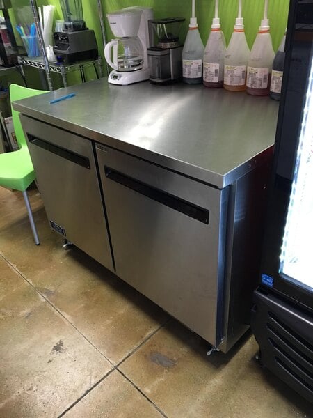 My Coldtech 48" undercounter cooler finally died. We had owned it for 8 years and we purchased it used at about the time they quit making them. When my Repairman got on the phone to his company to find a Salesman to try to source & replace it, I was online with Webstaurant, found a unit (in stock). I had it delivered, attached the wheels myself and had it placed, before I even received a return call from the local Salesman. Since this is a unit under our espresso machine that holds milk & alternative milks, it was imperative that we get it replaced ASAP. My Staff didn't even realize it was a new cooler until they noticed one of the doors would remain closed after shutting it. I love the internal temperature on the front bottom panel, too!