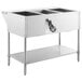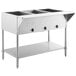 Keep all of your menu items piping hot and readily available with the Avantco STE-3S three pan open well electric steam table with undershelf! This powerful holding unit can hold three full size food pans full of pasta, meat, or side dishes in each 500W well. This unit is constructed of medium-duty stainless steel with galvanized legs and 8" deep wells, ensuring the durability and reliability you need at your buffet or catered event.