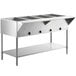 The steam table works great. The full size pan we purchased do not fit. The pans are 6” deep but slip into the wells. Is there specific steam table pan that need to be purchased for this table?