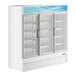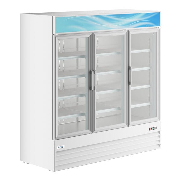 Increase your sales of "grab and go" items like bottled tea and soda, or pre-packaged sandwiches and salads with this Avantco GDC-69-HC 78 1/4" white merchandising refrigerator! Designed with sharp looks and usability in mind, this unit is the perfect display for your products with its sleek white finish and a lighted top graphics area. And, since the housing is made from white coated steel, you can be sure that it will provide superior durability. Additionally, it boasts 3 anti-fogging, dual-pane tempered glass swing doors to ensure that customers always have a clear view of your products, while 8 epoxy-coated steel shelves help you stay organized. Plus, the shelves easily adjust to accommodate changing inventory and menus. Interior LED lighting on the right side also works to illuminate and further merchandise your products.