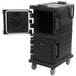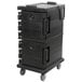 Keep hot or cold food at the optimum serving temperature for up to 4 hours with the Cambro UPC600110 Ultra Camcart® black insulated food pan carrier. This front loading food pan carrier holds up to eight 2 1/2" deep full size food pans, providing ease of transportation and food delivery for your catering operation.