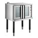 For long-lasting durability and easy cleaning, the exterior is constructed of sturdy stainless steel, while the interior of the oven is made with porcelain sides and floor. It includes 3 adjustable wire racks, which can be moved into 11 different positions to best suit your menu, and it has 4 adjustable legs. It features high-efficiency heating elements and an electronic thermostat for accurate temperatures and precise cooking. Two independent glass doors feature Bakelite handles to provide comfortable heat resistance and visibility while closed. This gives you the ability to check on dishes without releasing hot air and reducing the chamber temperature. This oven requires a 208V, 1 phase electrical connection for operation.