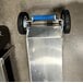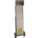 The 2-wheel, lightweight aluminum frame makes rolling the unit from place-to-place easy, and its blue polyurethane handles make maneuvering it comfortable. It is designed for use with fryers with drain outlets at least 8 1/2" off of the floor. This container is designed to dump into waste containers 49 3/8" or less off of the floor, with an opening at least 11 3/4" x 7 3/4" and set back from the front edge a maximum of 3 1/2".