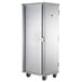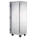 Hold and transport a wide variety of your most popular baked goods with the Regency 40 pan end load enclosed bun/sheet pan rack. The sheet pan rack can accommodate up to (40) 18'' x 26'' pans, while integrated rail-type ledges are spaced at 1 1/2'' intervals and not only offer sturdy support, but also ensure safe and easy transport of your pans. An enclosed design with a solid door and built-in latching mechanism provides unparalleled storage security.