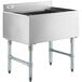 This Regency ice bin is constructed of 20 gauge, type 304 stainless steel and features poly foam insulation to help keep the bin's contents cooler longer. It stands on four galvanized legs with adjustable plastic bullet feet for stability. It also boasts a backsplash to help keep your walls and floors dry. Thanks to this unit's versatility, it's easy to store and chill everything you need to create the perfect gin and tonic, whiskey ginger, cranberry vodka, and other popular drinks at your busy bar, nightclub, or restaurant.