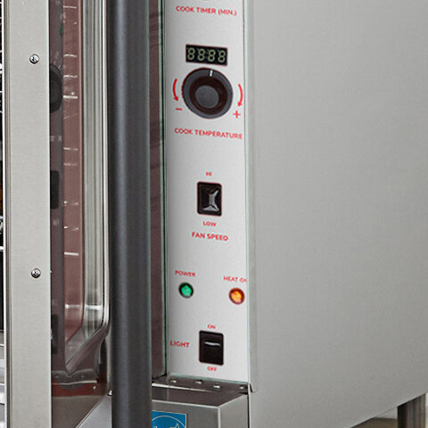This oven features high-efficiency heating elements and an electronic thermostat for accurate temperatures and precise cooking. It boasts a temperature range of 150 to 500 degrees Fahrenheit and is powered by an 11 kW heater and built-in convection fans. This makes the oven great for countless menus and food service operations.