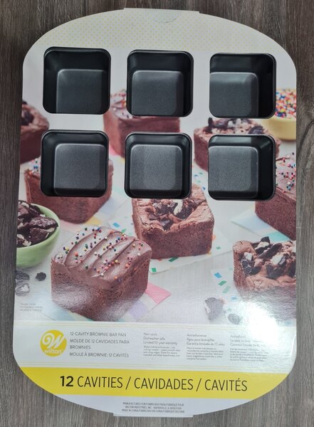 Wilton 191002412 12-Compartment Non-Stick Steel Bite-Size Brownie Pan - 2 1/2" x 2 1/2" x 1 1/2" Cavities