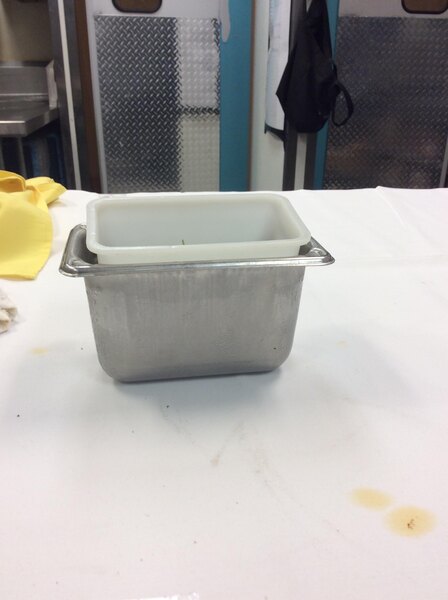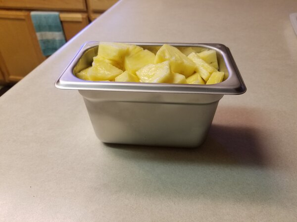 this small size stainless steel pan is perfect. we use to keep in the fridge with small amount of pizza toppings, easy to clean in the dishwasher machine