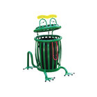 For a fun twist on regular trash disposal, this receptacle features a playful frog design that is sure to encourage adults and children alike to dispose of their trash, preventing littering in outdoor areas. It is perfect for use in parks, playgrounds, campsites, public pools, or even zoos and amusement parks. This receptacle makes taking out the trash easy and enjoyable!