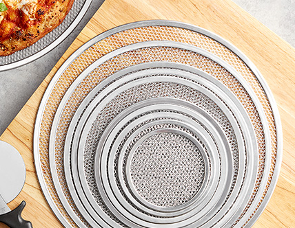 Our pizza pans selection includes deep dish pans, wide rim pans, and Detroit-style pans so that you can prepare pizzas the way you see fit.