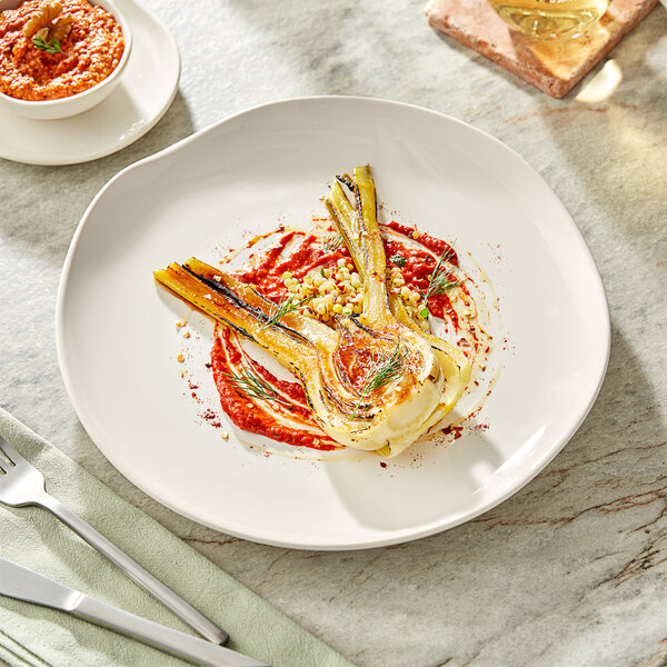 The organic shape of this plate provides a handmade feel that adds a touch of elegance to your tabletop presentation. Crafted from fully vitrified china, this plate is durable and long-lasting, making it perfect for daily use in your restaurant. Its coupe styling maximizes serving space, providing ample room for your dishes. Whether you're serving dinner or large entrees, this plate is the ideal vessel to elevate your culinary creations.