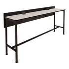 Provide your guests with a reliable workspace with this Plymold 96" x 19" beigewood laminate bar height powered dining counter. This unit creates more counter space in your coffee shop, quick service restaurant, or airport while maintaining a thin profile with its compact design and privacy with its 16" black laminate privacy panel. Additionally, its 2 power receptacles offer easy charging of multiple devices at a time, making it the perfect place to work from when needed. Each receptacle comes ready with 2 outlets and 2 USB ports to provide an easy charging solution for a variety of devices. Plus, the base of this unit has a stretcher bar for additional support.