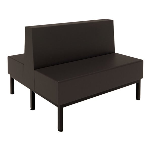 Upgrade your establishment with this Plymold Mesa 48" long double booth. Featuring a comfortable, 8 3/4" thick black vinyl cushioning, this booth is sure to add a modern touch to your decor. It is strengthened by a reliable 1 1/2" 16 gauge steel frame with an onyx black powder-coated finish so that it can withstand the demands of your establishment.