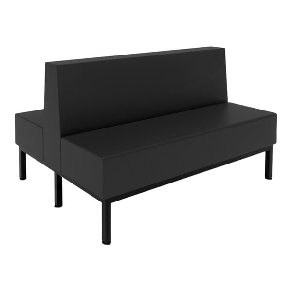 Upgrade your establishment with this Plymold Mesa 60" long double booth. Featuring a comfortable, 8 3/4" thick black vinyl cushioning, this booth is sure to add a modern touch to your decor. It is strengthened by a reliable 1 1/2" 16 gauge steel frame with an onyx black powder-coated finish so that it can withstand the demands of your establishment.