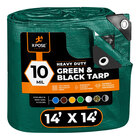 Xpose Safety 14' x 14' Green / Black Heavy-Duty Weatherproof 10 Mil Multipurpose Polyethylene Tarp MTGB-1414-X