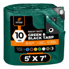 Xpose Safety 5' x 7' Green / Black Heavy-Duty Weatherproof 10 Mil Multipurpose Polyethylene Tarp MTGB-57-X