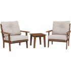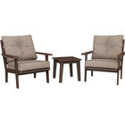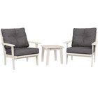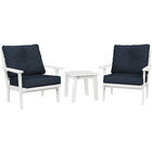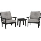 The POLYWOOD Lakeside Black / Grey Mist deep seating patio set with Lakeside table and chairs is a sophisticated yet casual addition to any outdoor entertaining space. This cottage-living inspired set comes with one end table and two deep seating chairs from the Lakeside collection for a consistent aesthetic, providing guests with a comfortable spot to relax and enjoy cocktails, small plates, or even desserts. The pieces in this set are made from renowned POLYWOOD lumber slats that provide the look of painted wood, but without any of the upkeep that is required of real wood. For incredible durability and equally low maintenance, this HDPE lumber won't splinter, crack, chip, peel, or rot and you never have to worry about painting, staining, or waterproofing it.