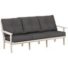 Give guests a charming, comfortable spot to sit together with this POLYWOOD Lakeside 4413-BL145980 Black / Gray Mist deep seating sofa. This sofa features simple, classic styling and provides an easy way to enhance and attract guests to any outdoor space. To ensure optimal comfort for your guests, the sofa features an extra-deep seat, ample armrests, a gently reclined back rest, and thick Gray Mist cushions. This piece is stylish, durable, and stable with two pairs of center legs adding additional support. The sofa frame is made from renowned POLYWOOD lumber slats which provide the look of painted wood, but without any of the upkeep that is required of real wood. For incredible durability and equally low maintenance, this lumber won't splinter, crack, chip, peel, or rot and you never have to worry about painting, staining, or waterproofing it.