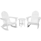 Create an inviting outdoor retreat with this POLYWOOD Vineyard Black 3-piece Adirondack rocking chair set. Perfect for seating 2 people, this set includes (2) Vineyard Adirondack rocking chairs and (1) 18" round side table. POLYWOOD's Vineyard Collection has a charming, traditional design that allows it to complement a variety of outdoor settings. The Adirondack rocking chairs feature a contoured seat and waterfall front design to ensure your guests' ultimate comfort and relaxation, while the side table offers an ideal spot to set drinks and snacks. Each piece is constructed from renowned POLYWOOD lumber slats that provide the look of painted wood without requiring the upkeep. For incredible durability and equally low maintenance, this lumber won't splinter, crack, chip, peel, or rot, and you never have to worry about painting, staining, or waterproofing it.