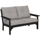 Give guests a charming, comfortable spot to sit together with this POLYWOOD Vineyard GN46SA-145986 Sand / Ash Charcoal deep seating settee. This settee features simple, classic styling with ample armrests, a gently reclined back rest, and thick Ash Charcoal cushions to ensure optimal comfort for your guests. Stylish, durable, and stable with center legs adding additional support, it provides an easy way to enhance and attract guests to any outdoor space. The frame of the piece is made from renowned POLYWOOD lumber slats which provide the look of painted wood, but without any of the upkeep that is required of real wood. For incredible durability and equally low maintenance, this lumber won't splinter, crack, chip, peel, or rot and you never have to worry about painting, staining, or waterproofing it.