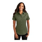 This women's dress shirt is made of a 4.5 oz. 55% cotton / 45% polyester blend for a soft, comfortable feel. This easy-care material also provides wrinkle resistance, making it easy for your staff to maintain a sharp, clean appearance. This shirt offers a comfortable standard fit, and its short sleeves keep fabric out of the way as your staff works. Its stylish design provides a traditional, relaxed look.
