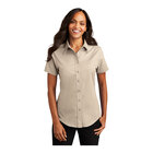 This women's dress shirt is made of a 4.5 oz. 55% cotton / 45% polyester blend for a soft, comfortable feel. This easy-care material also provides wrinkle resistance, making it easy for your staff to maintain a sharp, clean appearance. This shirt offers a comfortable standard fit, and its short sleeves keep fabric out of the way as your staff works. Its stylish design provides a traditional, relaxed look.
