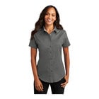 This women's dress shirt is made of a 4.5 oz. 55% cotton / 45% polyester blend for a soft, comfortable feel. This easy-care material also provides wrinkle resistance, making it easy for your staff to maintain a sharp, clean appearance. This shirt offers a comfortable standard fit, and its short sleeves keep fabric out of the way as your staff works. Its stylish design provides a traditional, relaxed look.